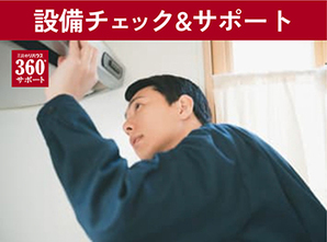 物件に付属しているエアコン・ガス給湯器等の主要設備について、物件お引渡し後故障が発生した場合に一定期間修理対応(360°サポートの一例)