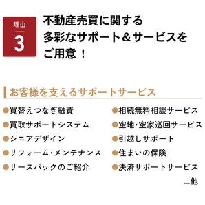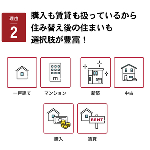 また、総合的に不動産を取り扱っているので住み替え先の選択肢もたくさん。ご自分の状況にフィットする納得の物件に出会えます。